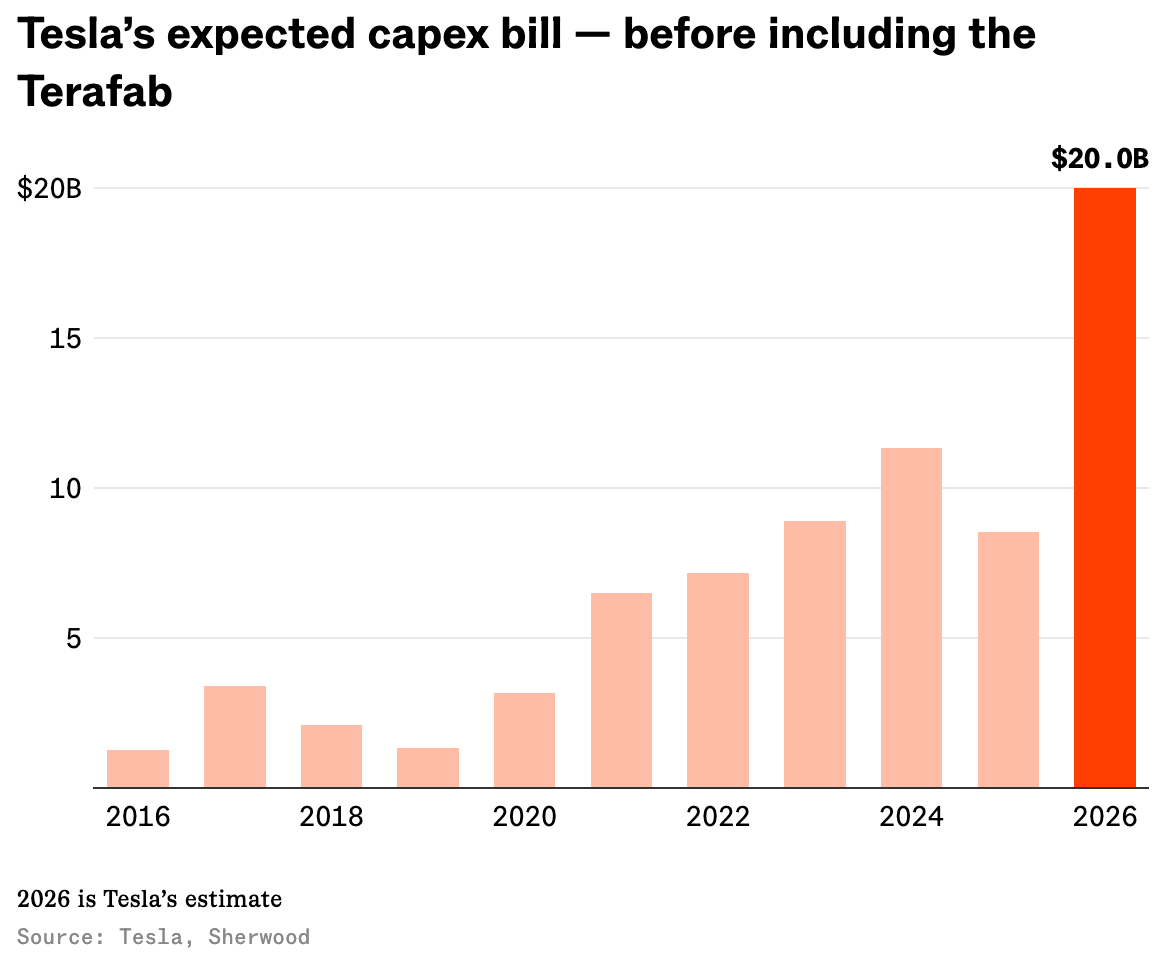 → On top of Tesla's already-sizeable $20 billion 2026 spending plan