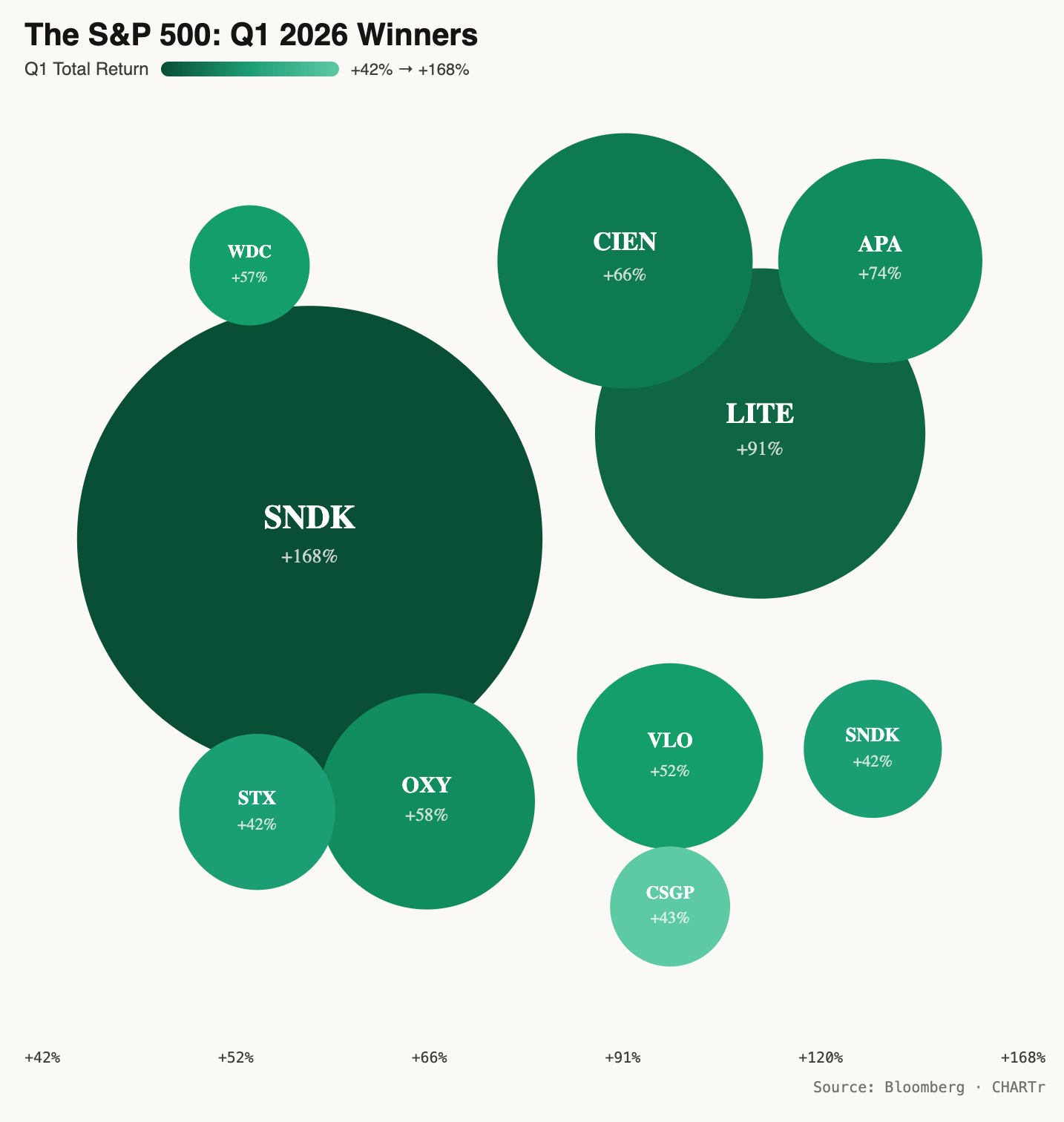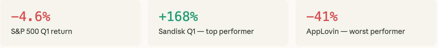 Sandisk — spun off from Western Digital last year — gained 168% in Q1.