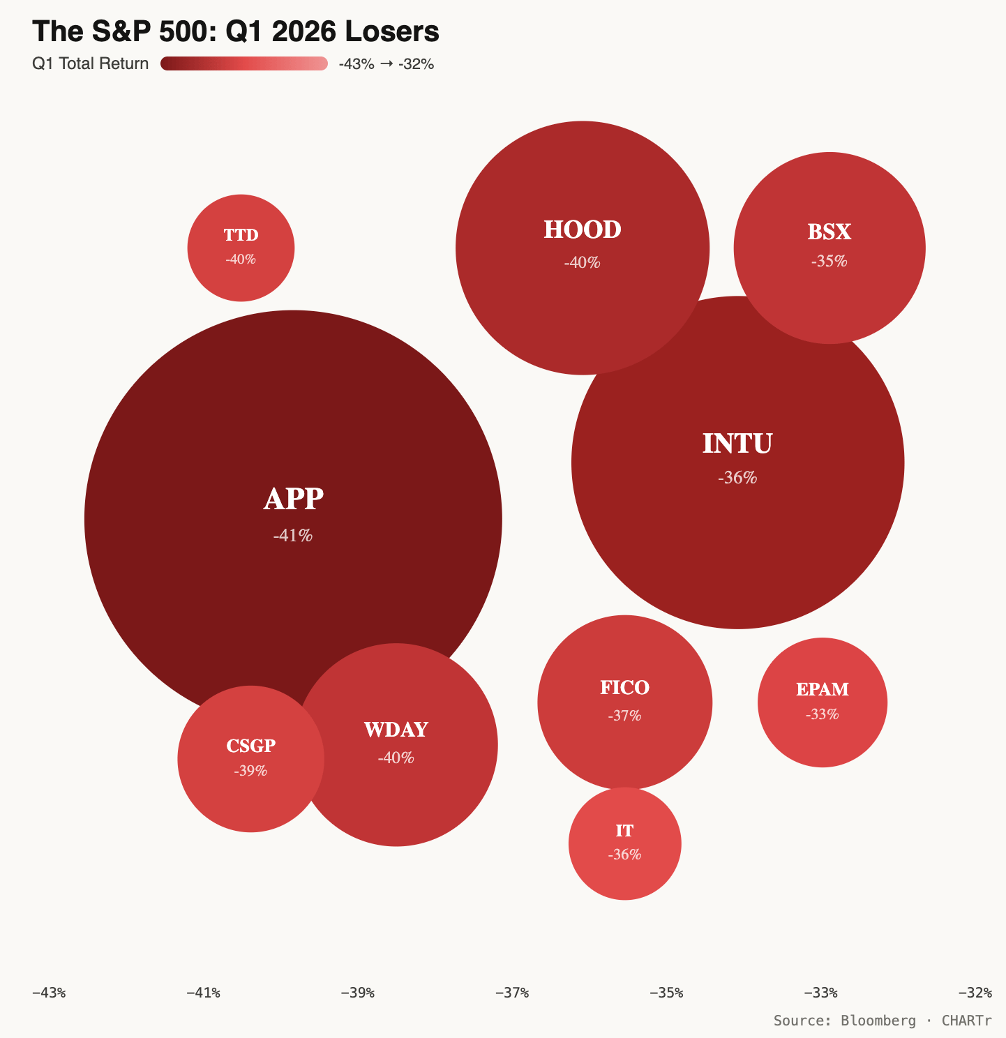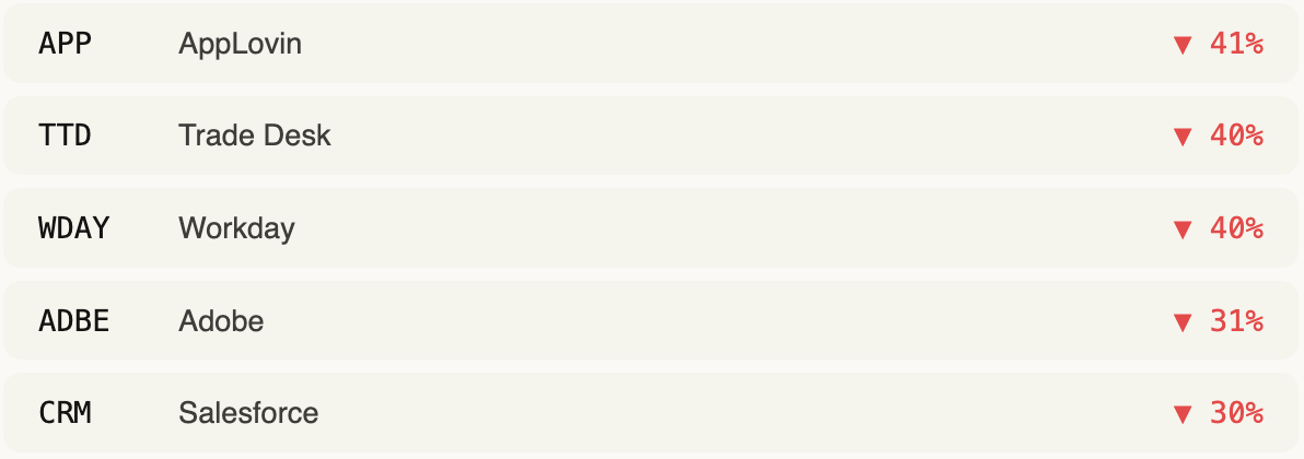 AppLovin — up 108% in 2025 — became the single worst performer in the entire index for Q1 2026.