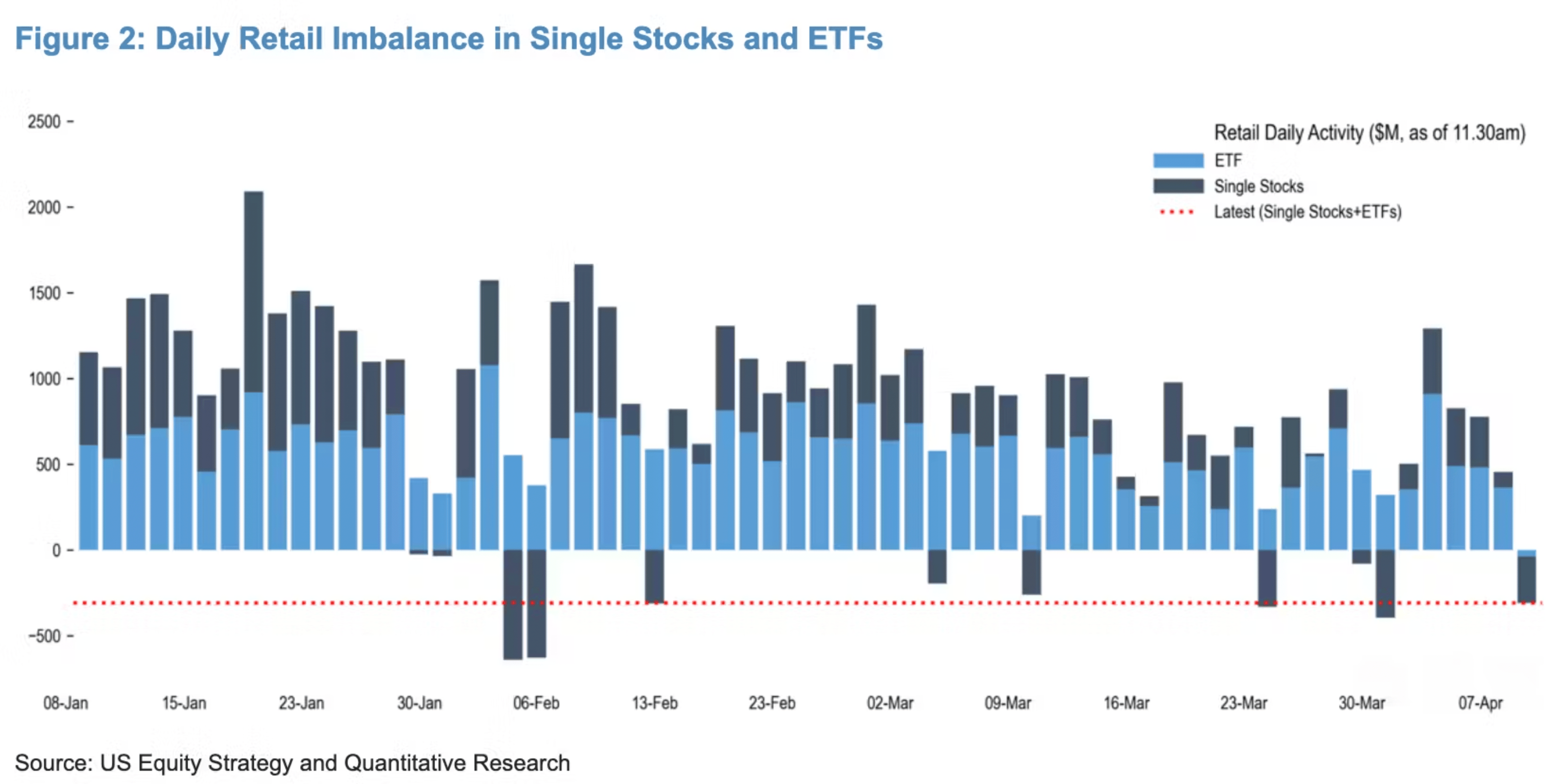 JPMorgan strategist Arun Jain was tracking retail trading activity through 11:30am ET today.
